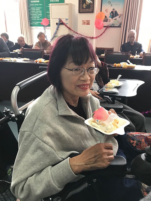 壽星代表肖增炎講話 作為壽星代表發(fā)言的肖增炎奶奶特別開心,肖奶奶說:“我在綠康住了近3年,早已把綠康當(dāng)成了家。綠康每個月都會為老人舉辦生日會,大家都很開心、感動。這里的工作人員對老人十分上心,服務(wù)周到,小孩很安心我住在這里。平時我就唱唱歌,畫些畫,日子甭提多充實了?!庇哪男つ棠桃么蠹乙黄瑲g笑,現(xiàn)場氛圍其樂融融。